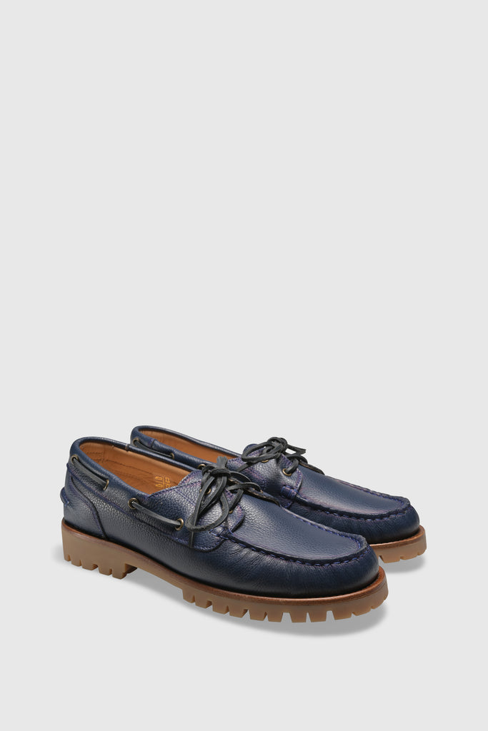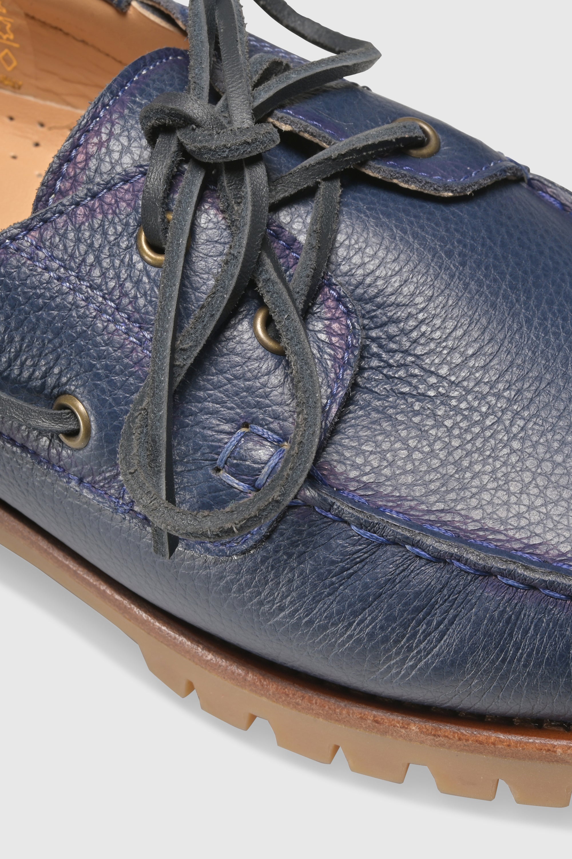 Der Loafer 5014 Mousse Navy wird in Italien aus weichem Mousse-Leder in einem tiefen Navy-Ton handgefertigt. Mit klassischen Boat-Shoe-Details wie Leder-Schnürung, robuster Gummiprofilsohle und einer raffinierten Loafer-Konstruktion zeigt dieses Modell präzises italienisches Handwerk.