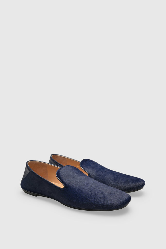 Der Loafer 9553 Pony Blue wird in Italien aus hochwertigem Pony-Leder in einem tiefen Navy-Ton handgefertigt. Als weicher Slipper-Style-Loafer konzipiert, kombiniert er ein minimalistisches Slip-On-Design mit einer dünnen, leichten Ledersohle, die hohen Komfort und italienische Handwerkskunst vereint.