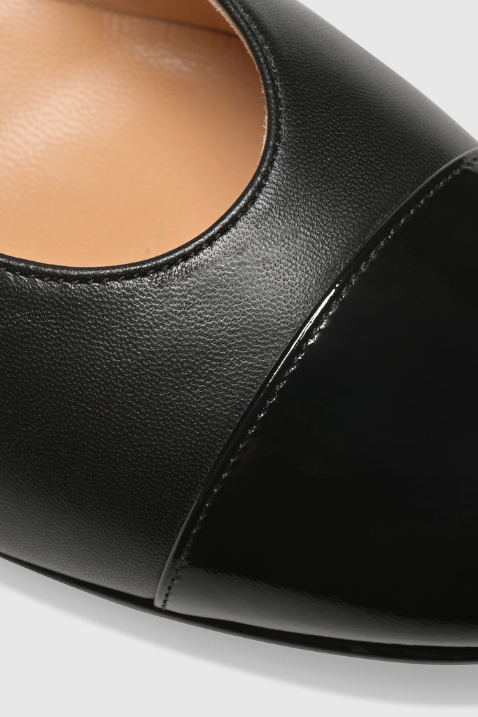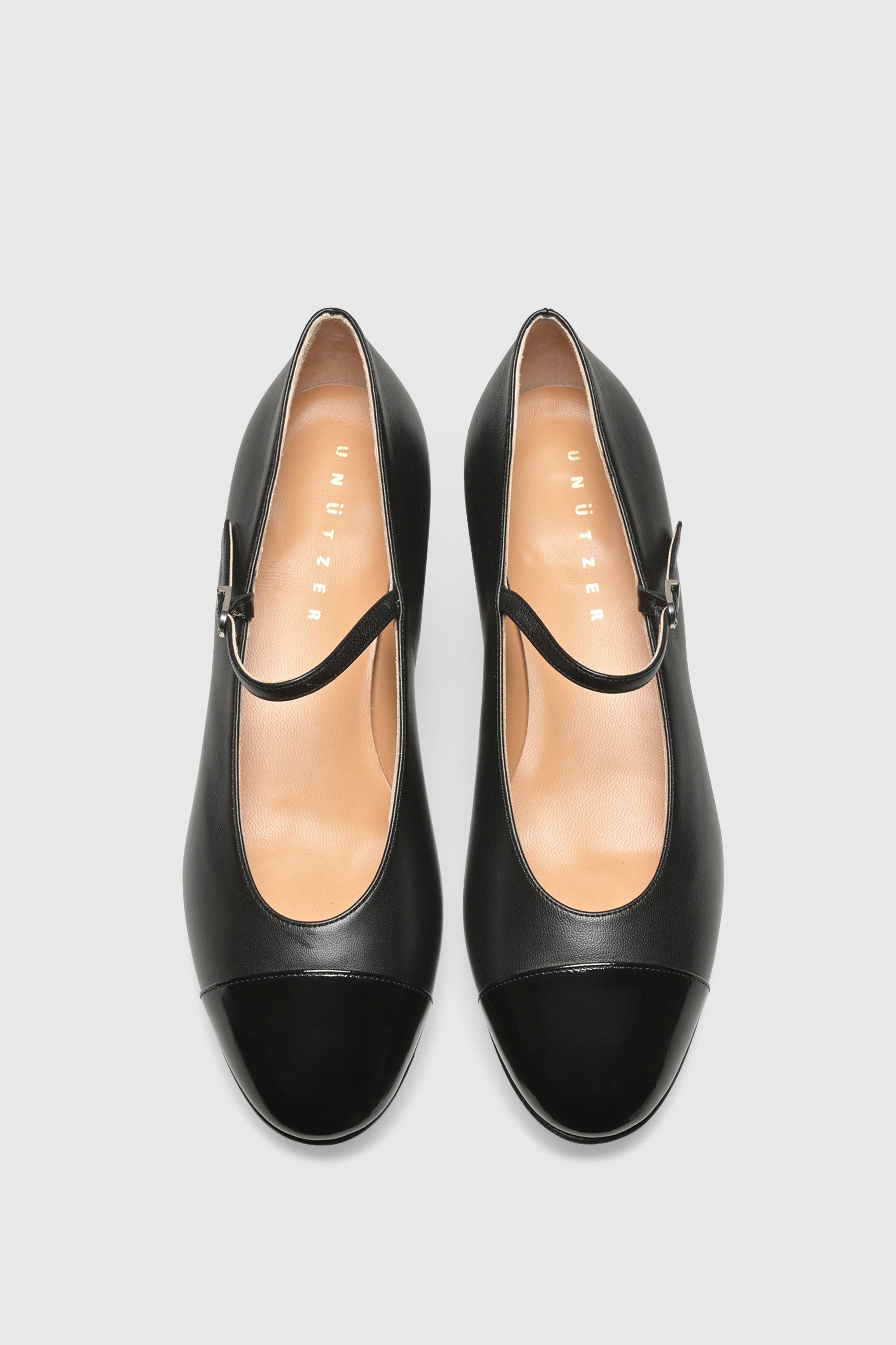 Der Pump 9537 Vernice Black wird in Italien aus hochwertigem Nappaleder mit Patent-Leder Zehenkappe handgefertigt. Mit Mary-Jane-inspiriertem Riemen, runder Zehenform und Blockabsatz vereint dieser Pump kontrastierende Materialien mit präzisem italienischem Handwerk.