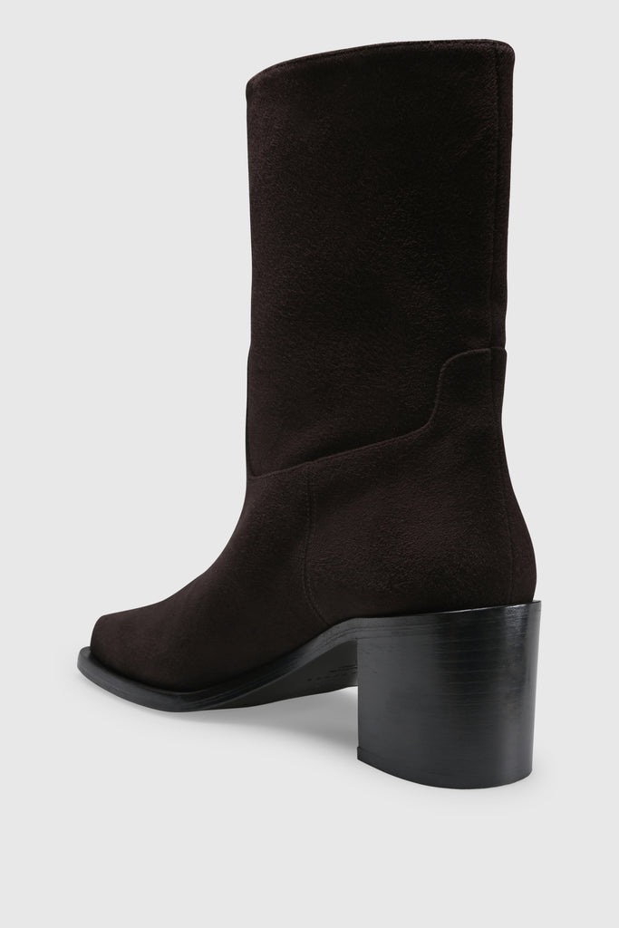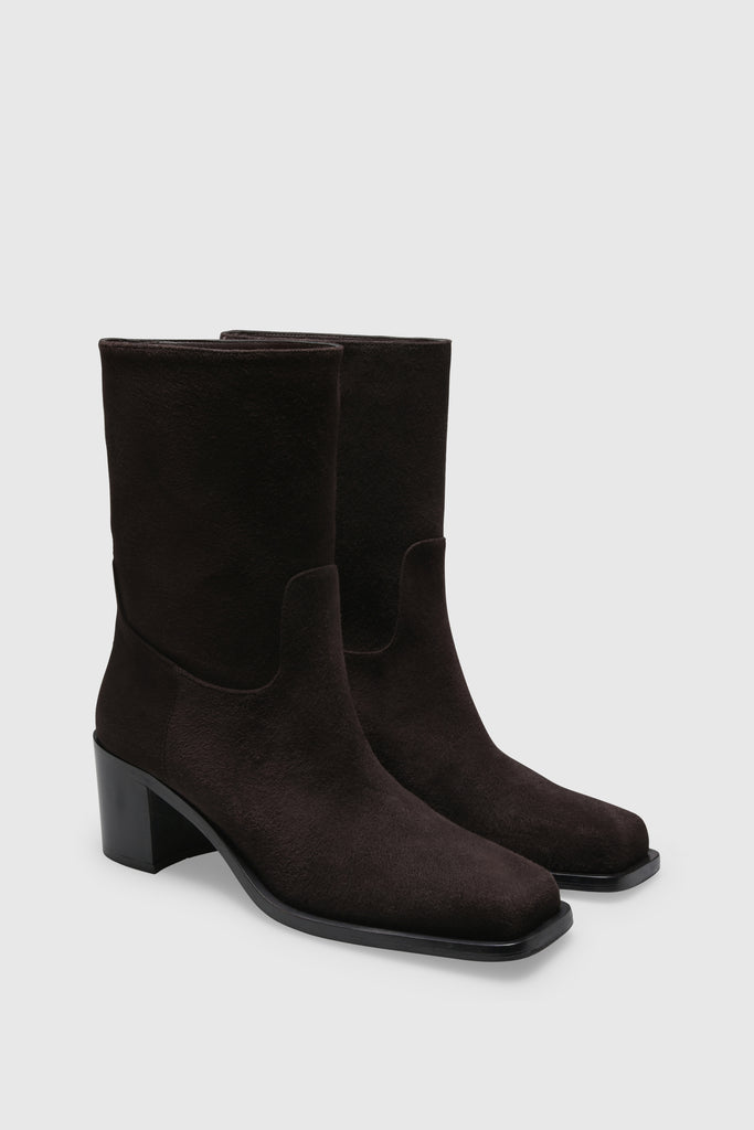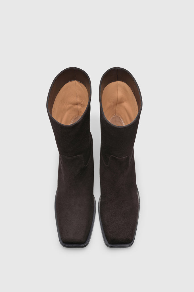 Die Stiefelette 9544 Camoscio Chocolate wird in Italien aus hochwertigem Camoscio-Leder handgefertigt. Mit quadratischer Zehenform, mittlerem Blockabsatz und strukturierter Silhouette vereint diese Stiefelette präzises italienisches Handwerk mit zeitgemäßem Design.