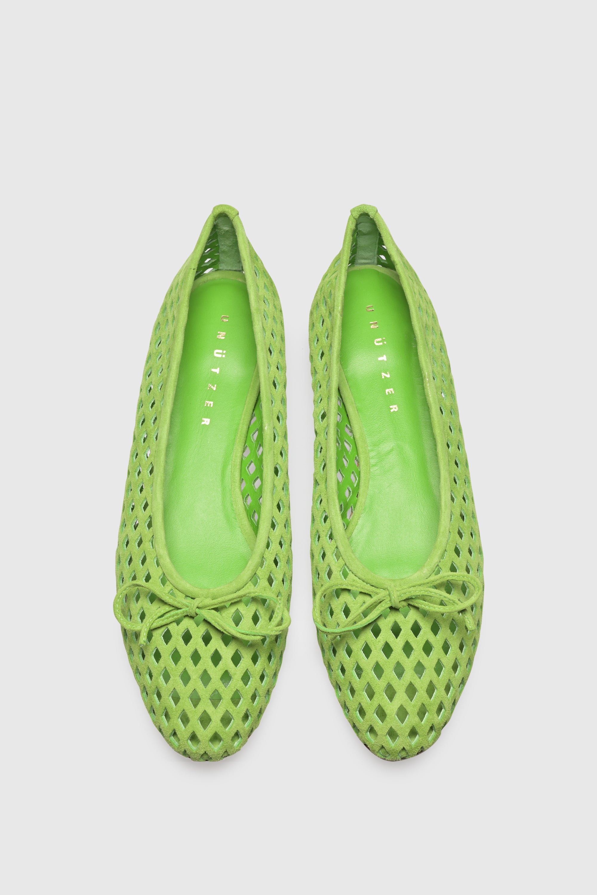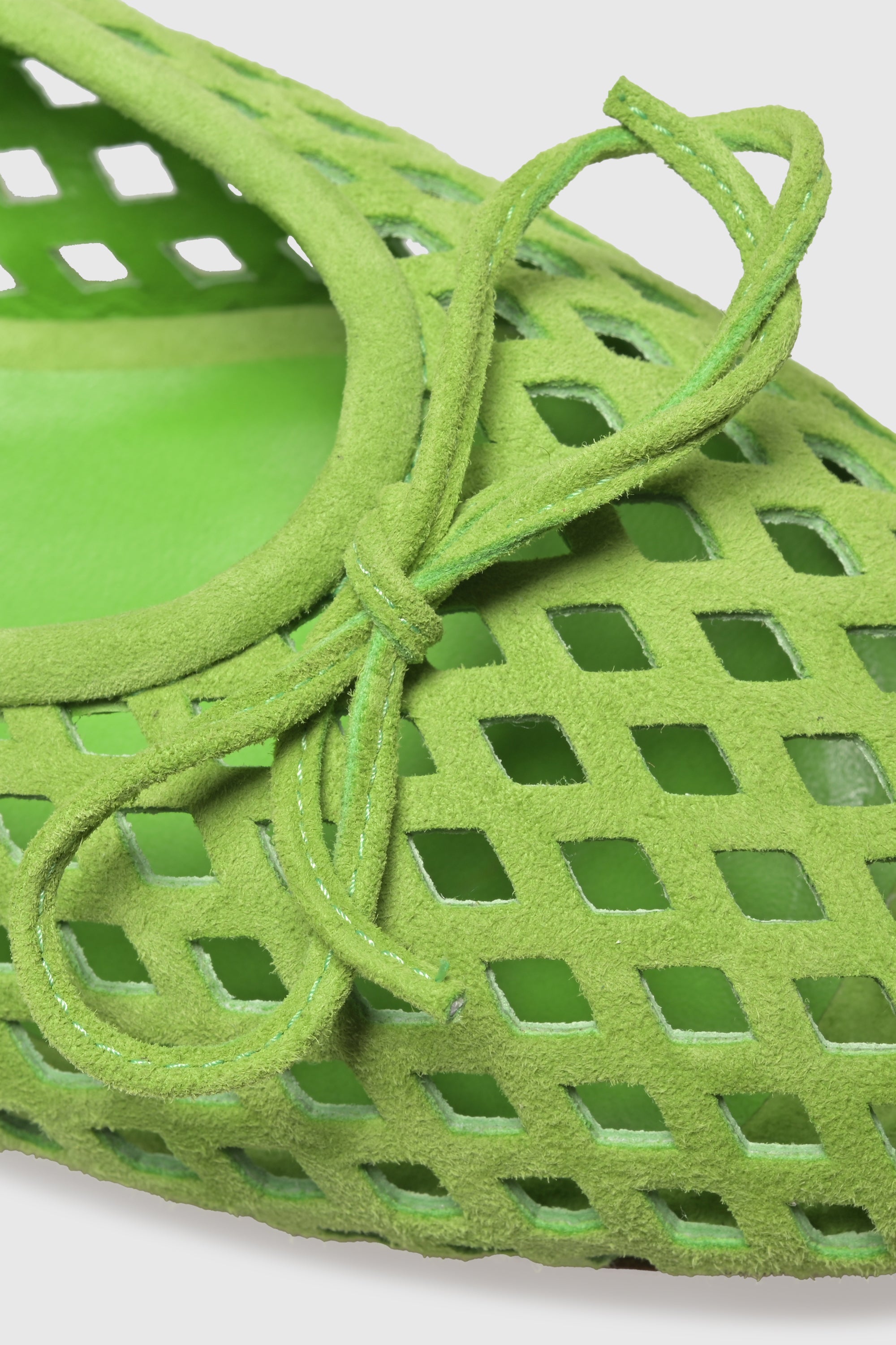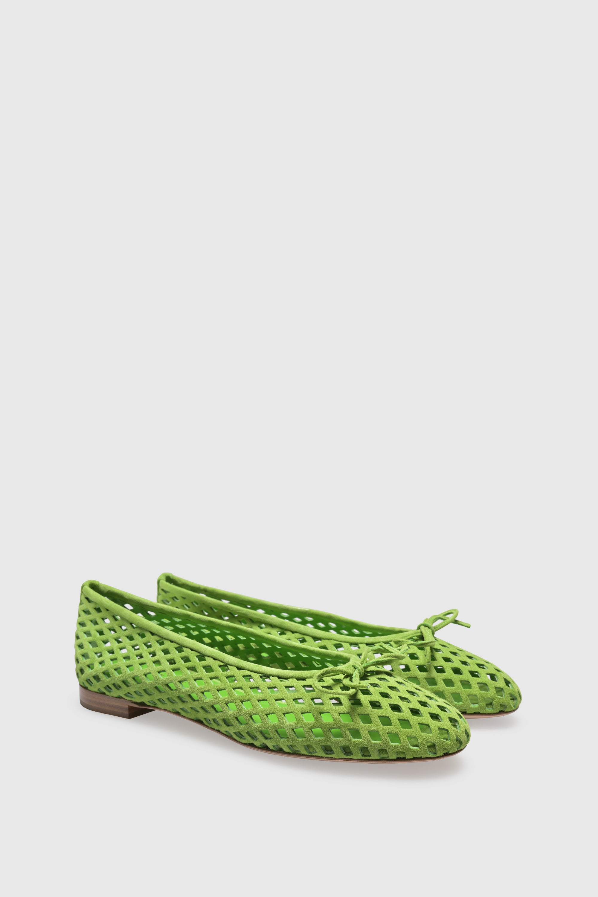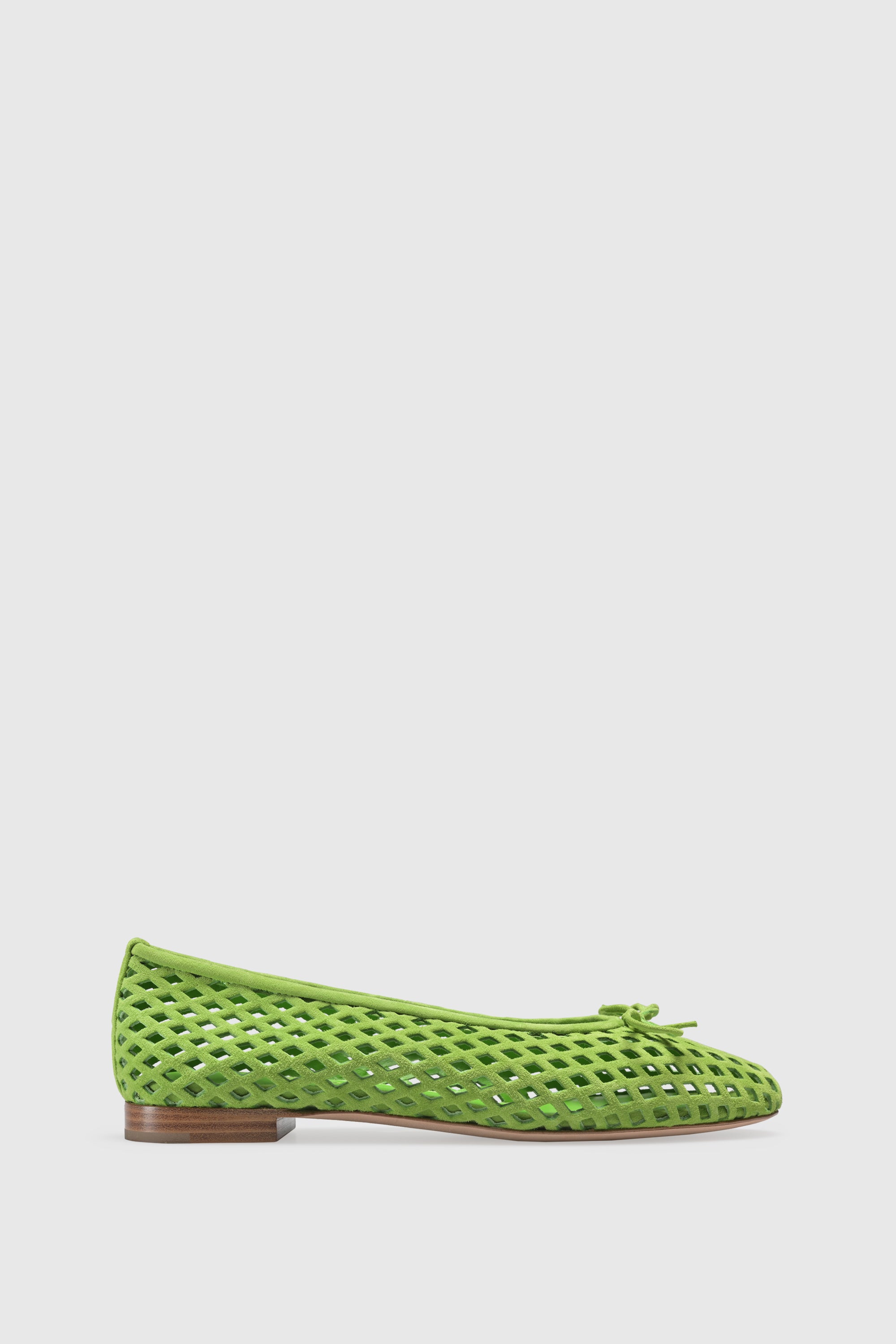 Der Ballerina 9421 Camoscio Apple wird in Italien aus hochwertigem Camoscio-Leder handgefertigt und zeichnet sich durch eine filigrane, perforierte Struktur aus. Die klassische Ballerina-Silhouette mit verfeinerter runder Zehenform und zartem Schleifendetail steht für traditionelles italienisches Schuhhandwerk sowie Leichtigkeit und Atmungsaktivität.