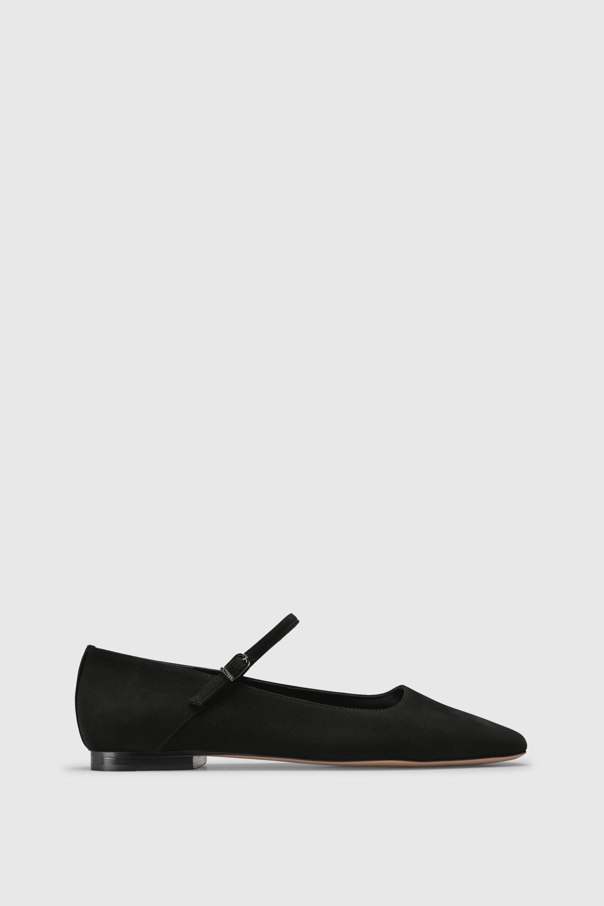 Der Ballerina 9500 Camoscio Black wird in Italien aus hochwertigem Camoscio-Leder handgefertigt. Die klare, minimalistische Mary-Jane-Ballerina-Silhouette mit quadratischer Zehenform, verstellbarem Riemen und ungefütterter Verarbeitung sorgt für besondere Weichheit und Flexibilität.